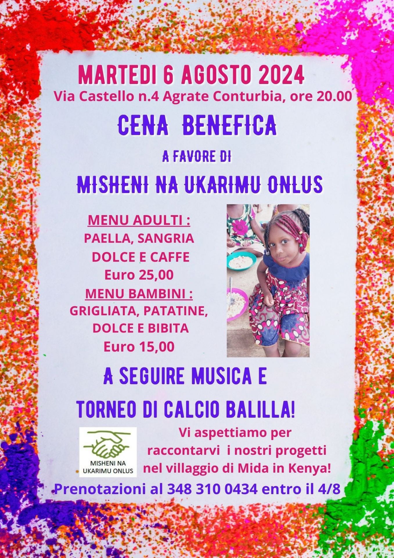 Serata benefica a favore di Misheni Na Ukarimu Onlus - Villaggio di MIDA (Kenia).