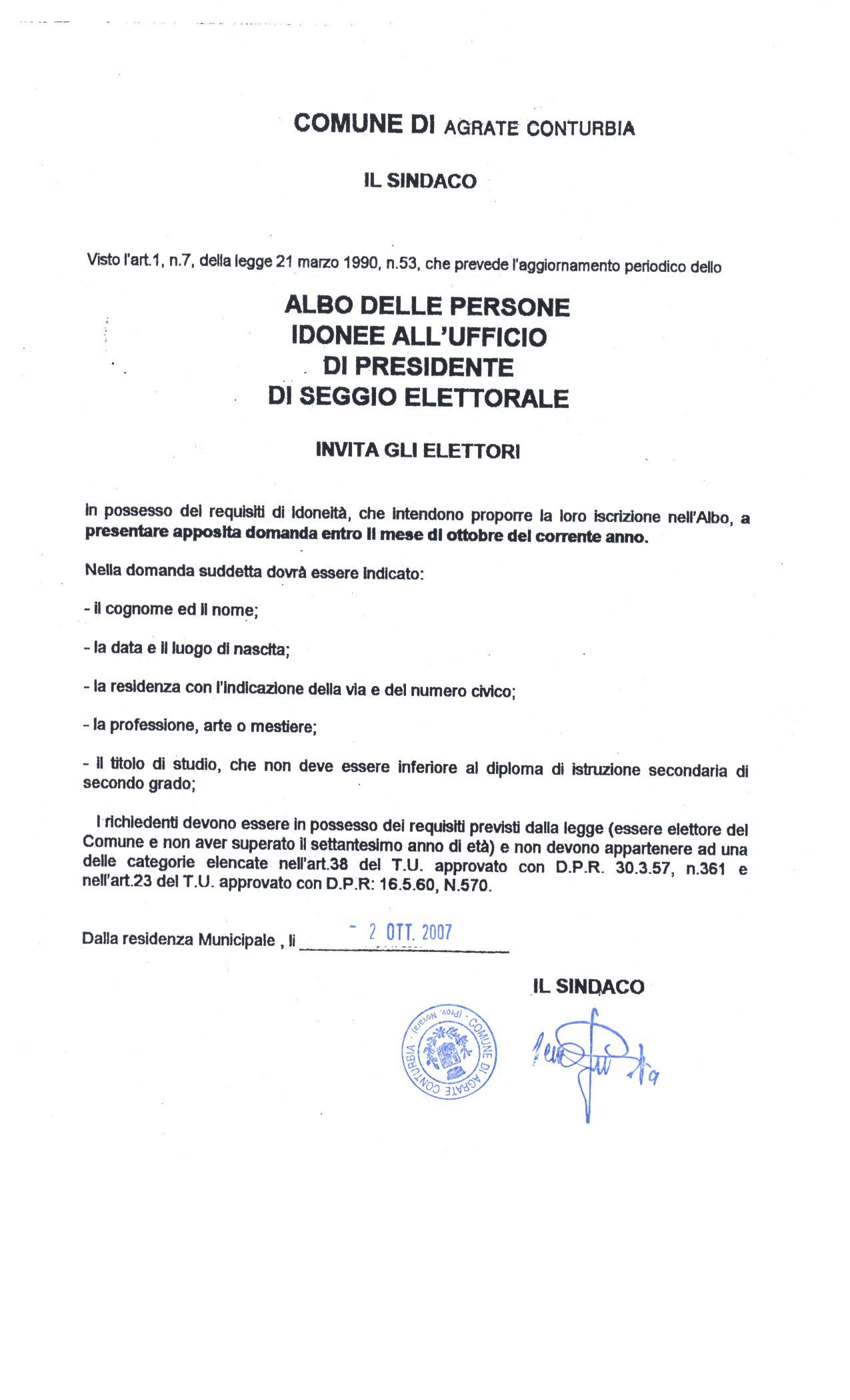 ISCRIZIONI ALL'ALBO DEI PRESIDENTI DI SEGGIO ELETTORALE
