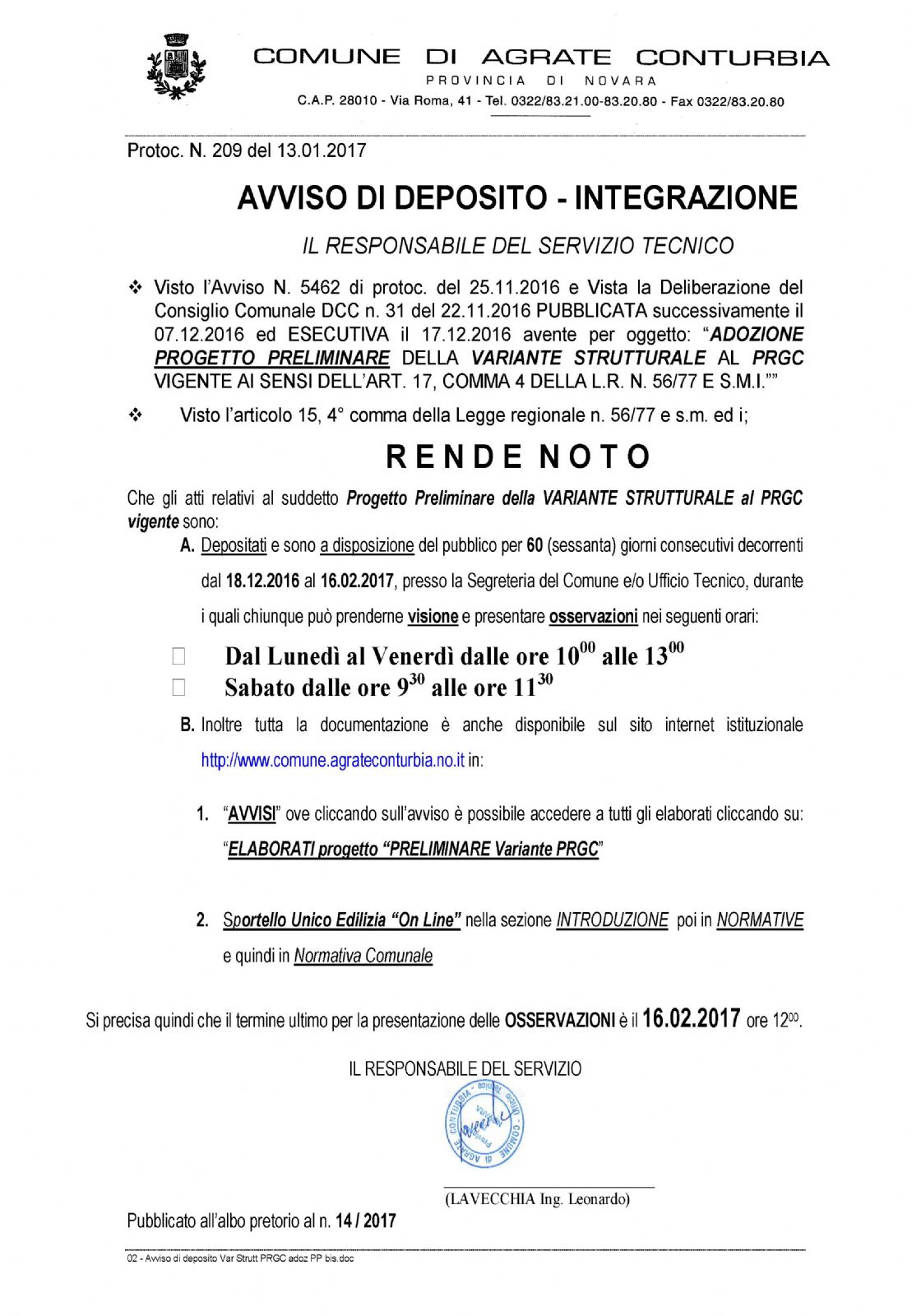 Adozione Progetto PRELIMINARE Variante Strutturale Piano Regolatore Comunale - PRGC