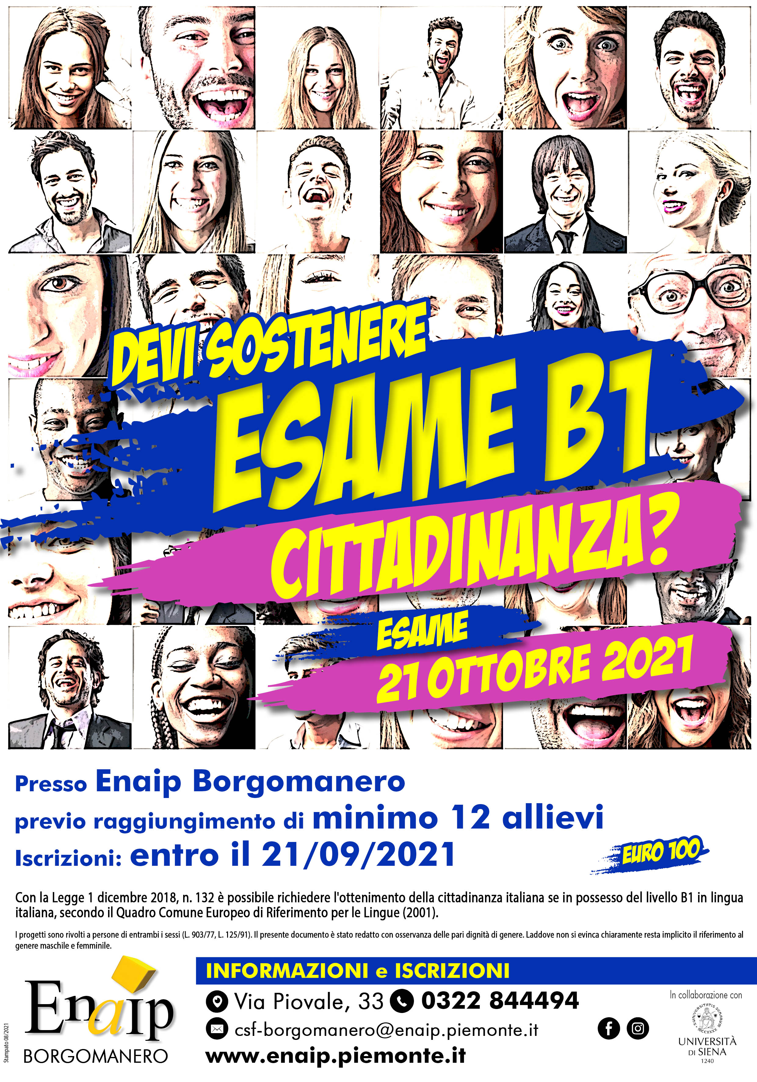 in allegato locandina ricevuta da CSF Enaip Borgomanero per il PROSSIMO ESAME DI LINGUA ITALIANA PER I CITTADINI EXTRACOMUNITARI CHE DEVONO SOSTENERE L'ESAME LIVELLO B1- Cittadinanza